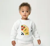 Le nostre felpe per neonati sono realizzate all'85% in cotone biologico ed etico e al 15% in poliestere riciclato.