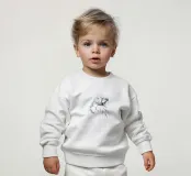 Le nostre felpe per neonati sono realizzate all'85% in cotone biologico ed etico e al 15% in poliestere riciclato.