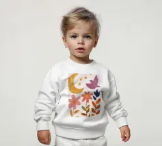 Le nostre felpe per neonati sono realizzate all'85% in cotone biologico ed etico e al 15% in poliestere riciclato.
