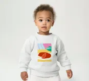 Le nostre felpe per neonati sono realizzate all'85% in cotone biologico ed etico e al 15% in poliestere riciclato.