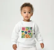Le nostre felpe per neonati sono realizzate all'85% in cotone biologico ed etico e al 15% in poliestere riciclato.