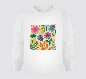 Una bella macchia di fiori selvatici stilizzati e stravaganti è illustrata in un affascinante stile ispirato all'arte popolare, con un delizioso mix di colori e forme che irradiano gioia e bellezza naturale.