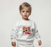 Le nostre felpe per neonati sono realizzate all'85% in cotone biologico ed etico e al 15% in poliestere riciclato.