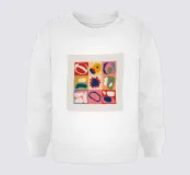 Una composizione astratta moderna e giocosa, caratterizzata da una disposizione a griglia di forme organiche e colorate. L'opera si presenta come un puzzle sofisticato ed equilibrato di forme e colori.