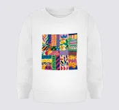 Un vivace e gioioso patchwork di vari motivi astratti e colori, tra cui fiori, strisce e forme geometriche, che creano un design tessile vivace ed energico.