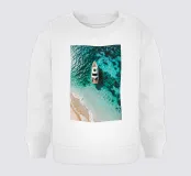 Questa affascinante foto aerea mostra un lussuoso yacht su acque cristalline in una tavolozza di colori da sogno: turchese, sabbia e blu profondo. La scena emana pura tranquillità, libertà e lusso marittimo, ideale per creare un'atmosfera vacanziera sulla parete. Perfetto per gli amanti della fotografia oceanica, dei motivi da spiaggia e dell'interior design moderno.