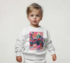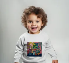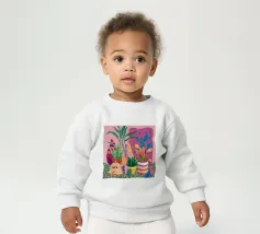 Le nostre felpe per neonati sono realizzate all'85% in cotone biologico ed etico e al 15% in poliestere riciclato.