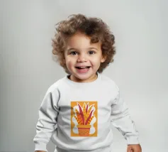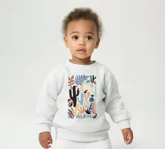 Le nostre felpe per neonati sono realizzate all'85% in cotone biologico ed etico e al 15% in poliestere riciclato.