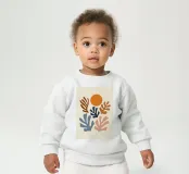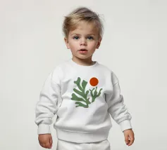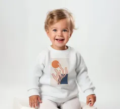 Le nostre felpe per neonati sono realizzate all'85% in cotone biologico ed etico e al 15% in poliestere riciclato.