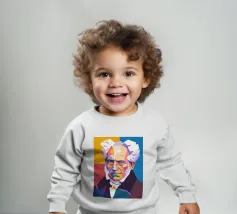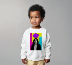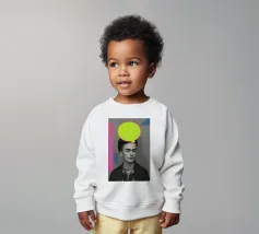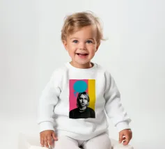 Andy Warhol, il re della pop art, in un omaggio con un colpo di scena: una bolla vocale vuota fluttua sopra la sua testa - su uno sfondo giallo brillante, combinato con allusioni colorate CMYK in ciano, magenta e nero. Tra ritratto, pop e post-ironia. Fa parte della serie Geometric Masters, che decostruisce figure artistiche iconiche utilizzando forme e colori geometrici. Forte, intelligente, moderno.