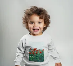 Le nostre felpe per neonati sono realizzate all'85% in cotone biologico ed etico e al 15% in poliestere riciclato.