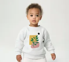 Le nostre felpe per neonati sono realizzate all'85% in cotone biologico ed etico e al 15% in poliestere riciclato.