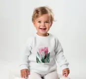 Le nostre felpe per neonati sono realizzate all'85% in cotone biologico ed etico e al 15% in poliestere riciclato.