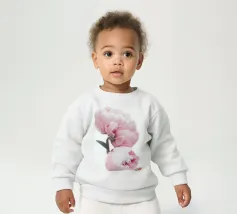 Le nostre felpe per neonati sono realizzate all'85% in cotone biologico ed etico e al 15% in poliestere riciclato.