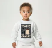 Le nostre felpe per neonati sono realizzate all'85% in cotone biologico ed etico e al 15% in poliestere riciclato.