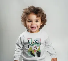 Le nostre felpe per neonati sono realizzate all'85% in cotone biologico ed etico e al 15% in poliestere riciclato.