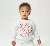 Le nostre felpe per neonati sono realizzate all'85% in cotone biologico ed etico e al 15% in poliestere riciclato.