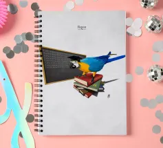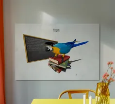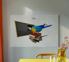 Illustrazione comica di un commento socio-politico sul modo in cui l'istruzione è diventata un meccanismo piuttosto che un sistema per sviluppare le menti. Tutto è copia, ripeti, copia, ripeti, a pappagallo.