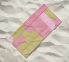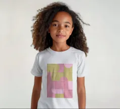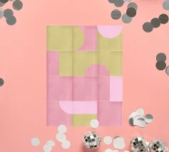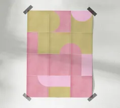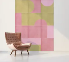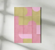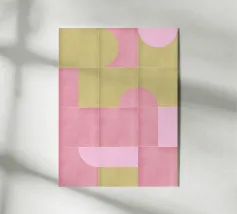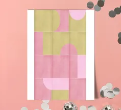 Questo design giocoso presenta un vivace mix di colori pastello e forme geometriche, evocando un'atmosfera nostalgica ma moderna.