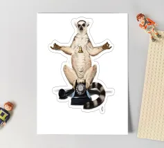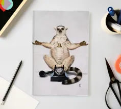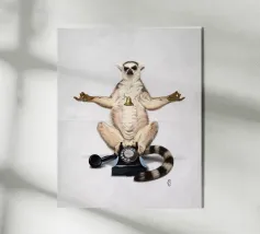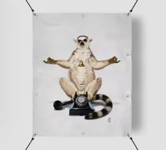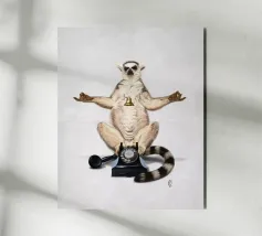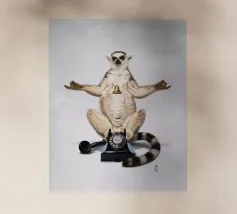 Illustrazione comica dell'intreccio di due significati della parola "anello". Il paziente lemure siede in cima al telefono in attesa che squilli, con la coda ad anello avvolta intorno.