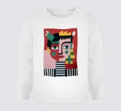 Un ritratto vivace e giocoso in stile cubista, con un volto composto da forme geometriche colorate, motivi e una camicia a righe, che crea una dichiarazione audace e artistica.