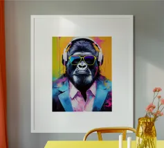 Quadro pop art - Scimpanzé caratteristico con accenti al neon Questo dipinto espressivo dona colore e umorismo a qualsiasi prodotto: i colori vivaci e lo stile giocoso rendono quest'opera d'arte un vero e proprio richiamo visivo.