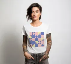 Motivo di piastrelle colorate, ispirato al design moderno e minimale e allo stile Memphis.