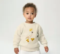 Le nostre felpe per neonati sono realizzate all'85% in cotone biologico ed etico e al 15% in poliestere riciclato.