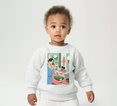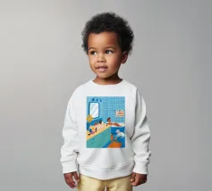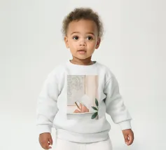 Le nostre felpe per neonati sono realizzate all'85% in cotone biologico ed etico e al 15% in poliestere riciclato.