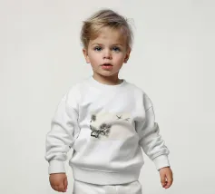Le nostre felpe per neonati sono realizzate all'85% in cotone biologico ed etico e al 15% in poliestere riciclato.
