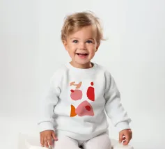 Le nostre felpe per neonati sono realizzate all'85% in cotone biologico ed etico e al 15% in poliestere riciclato.