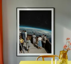 Una scena surreale di un pescatore solitario che si lancia nella galassia. Questo collage tranquillo e contemplativo cattura la pace della solitudine e la vastità del pensiero. Perfetto per sognatori e minimalisti.