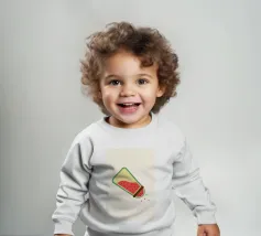 Le nostre felpe per neonati sono realizzate all'85% in cotone biologico ed etico e al 15% in poliestere riciclato.