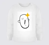 Un volto semplicistico e astratto è disegnato con linee nere decise e presenta una stella gialla sulla fronte. L'espressione è minimale, con piccoli punti per gli occhi e una linea retta per la bocca.