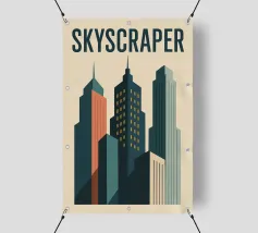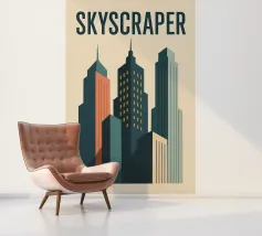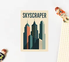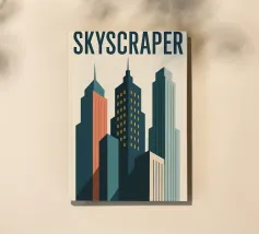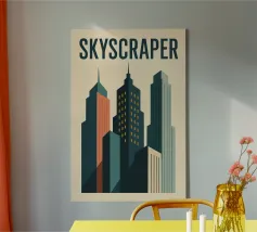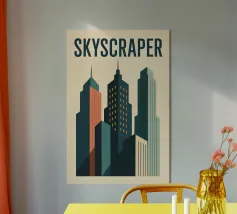 Grattacieli stilizzati dai colori intensi per un'immersione grafica nello skyline moderno. Questo poster rende omaggio all'architettura verticale e al ritmo delle grandi città, con la sua combinazione di potenza architettonica ed eleganza minimalista.