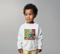Le nostre felpe per neonati sono realizzate all'85% in cotone biologico ed etico e al 15% in poliestere riciclato.
