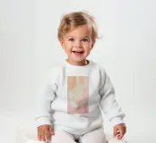 Le nostre felpe per neonati sono realizzate all'85% in cotone biologico ed etico e al 15% in poliestere riciclato.