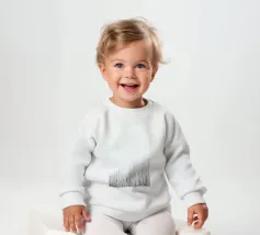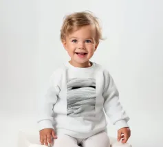 Le nostre felpe per neonati sono realizzate all'85% in cotone biologico ed etico e al 15% in poliestere riciclato.