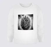 Una composizione surreale in bianco e nero con un'imponente struttura architettonica di ispirazione gotica circondata da acque ferme sotto una forte pioggia. L'illuminazione drammatica e il design intricato evocano un'atmosfera di struggente bellezza.