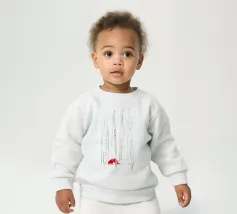 Le nostre felpe per neonati sono realizzate all'85% in cotone biologico ed etico e al 15% in poliestere riciclato.