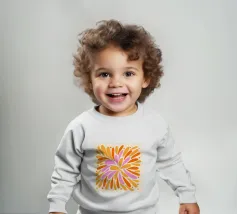 Le nostre felpe per neonati sono realizzate all'85% in cotone biologico ed etico e al 15% in poliestere riciclato.