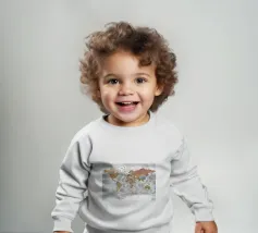 Le nostre felpe per neonati sono realizzate all'85% in cotone biologico ed etico e al 15% in poliestere riciclato.