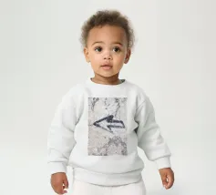 Le nostre felpe per neonati sono realizzate all'85% in cotone biologico ed etico e al 15% in poliestere riciclato.