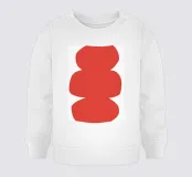 Tre audaci forme ovali irregolari rosse sono impilate verticalmente. La composizione crea un effetto visivo suggestivo e minimalista.
