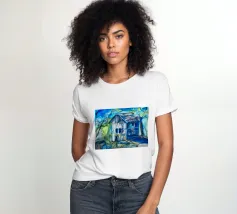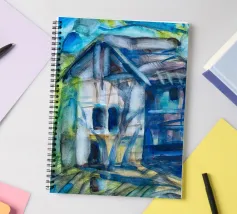 Immerso in una serena tonalità di blu, questo acquerello cattura la tranquilla bellezza di una vecchia casa che si erge in solitudine accanto a un albero invecchiato. Le delicate pennellate di colore evocano un senso di nostalgia, come se la casa contenesse echi del passato che sussurrano storie al vento. Le ombre morbide e le pennellate fluide creano un'atmosfera onirica, invitando lo spettatore a soffermarsi nel suo tranquillo abbraccio. Un dipinto che parla del tempo, della memoria e della tranquilla poesia dei luoghi dimenticati.
