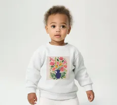 Le nostre felpe per neonati sono realizzate all'85% in cotone biologico ed etico e al 15% in poliestere riciclato.