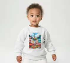 Le nostre felpe per neonati sono realizzate all'85% in cotone biologico ed etico e al 15% in poliestere riciclato.