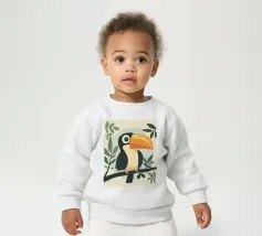 Le nostre felpe per neonati sono realizzate all'85% in cotone biologico ed etico e al 15% in poliestere riciclato.
