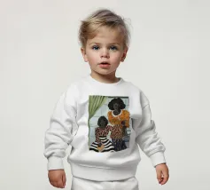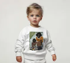 Le nostre felpe per neonati sono realizzate all'85% in cotone biologico ed etico e al 15% in poliestere riciclato.