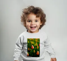 Le nostre felpe per neonati sono realizzate all'85% in cotone biologico ed etico e al 15% in poliestere riciclato.